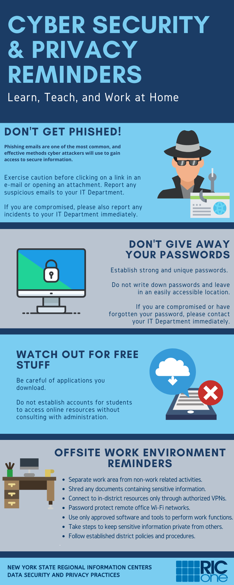 As we transition to a new world of working from home, remote instruction, and digital learning, it is important to keep in mind best practices around data privacy and security. Below we have collated helpful resources that you may share with your school communities. We will continue to add relevant resources as they become available.